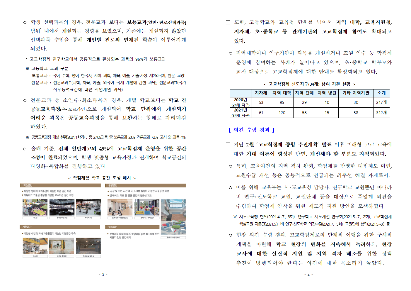 고교 학점제라는 말 자체가 생소 할 수 있습니다. 2021년도까지 법령과 교육 과정, 지침을 마무리 할 예정이라고 합니다. 이를 바탕으로 고교 학점제에 맞는 핵심 교원 양성과 역량 강화 사업을 실시 한다고 합니다. 교원을 준비하고 있는 교육대학교 학생들에게도 영향을 미칠 내용입니다. 교직공무원을 준비하고 있는 학생들과 학부모도 관심있게 보아야 합니다. 새로운 교원 수급을 2023년부터 실시 한다고 합니다. 이로 인해 모든 학교에서 학점제를 실시하게 됩니다. 교육부는 모든 고등학교에 학점제형 공간 조성 사업도 실시한다고하니 많은 변화가 예상됩니다.