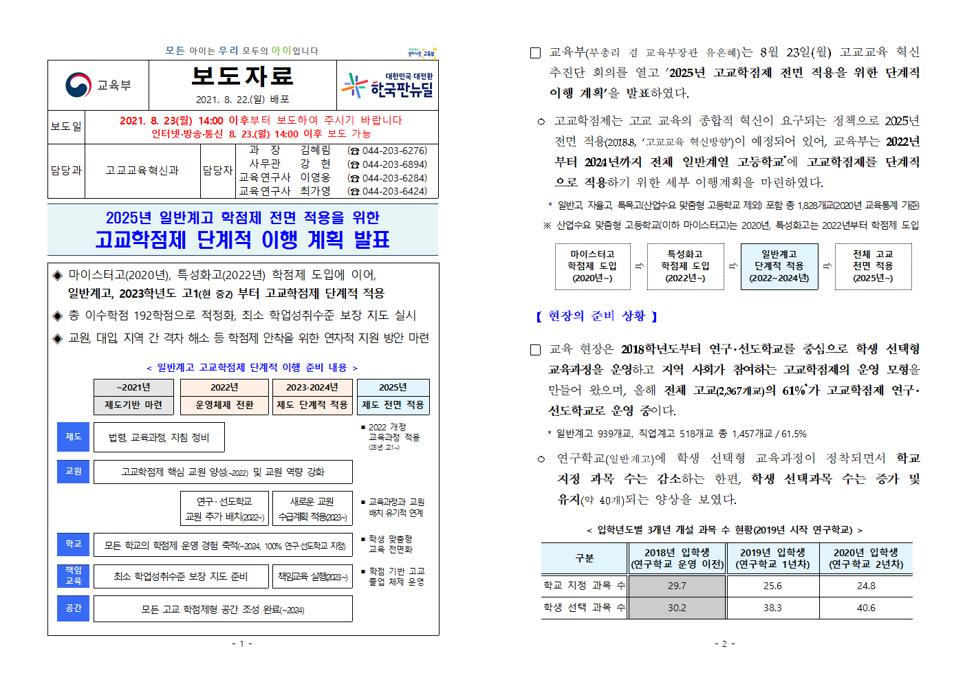 마이스터고 2020년부터 학점제를 도입하였습니다. 2022년부터 특성화고도 학점제가 도입됩니다. 이어서 2023년도에 고1부터 일반계고 고교 학점제가 단계적으로 적용될 계획을 교육부가 발표하였습니다. 현재 중학교 2학년 학생들과 학부모들은 유심히 살펴보아야 합니다. 교육부 발표 자료에 따르면 총 이수 학점 192학점으로 하여서 최소 학업 성취 수준 보장 지도를 실시한다고 합니다. 이로인해 교원, 대입, 지역 간 의 격차 해소등 학점제 안착을 위해서 지원 반안을 발표 하였습니다. 결론은 2025년부터는 모든 일반계고에 학점제 제도가 전면 적용 된다는 것입니다.