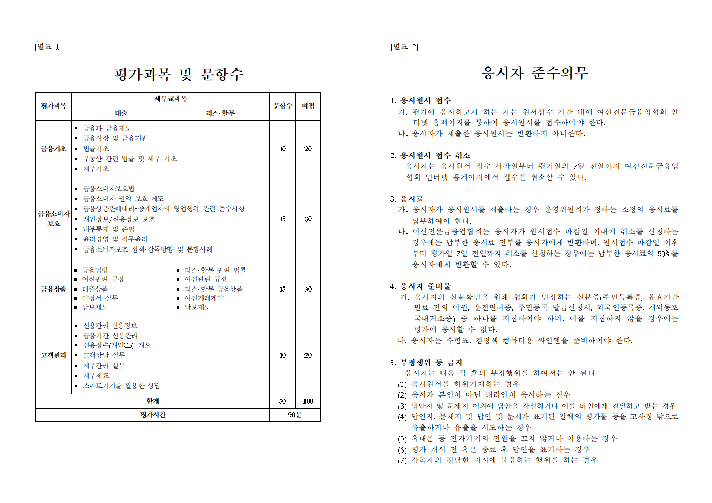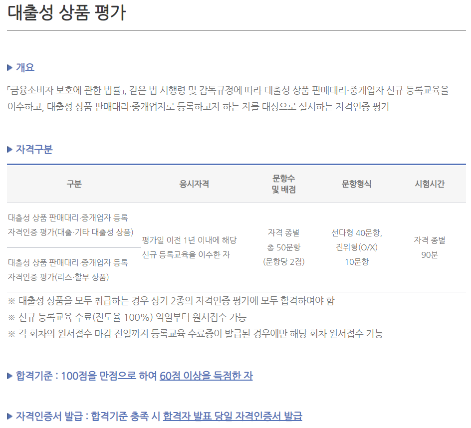 대출성 상품 판매대리 중개업자 등록자격 인증 평가