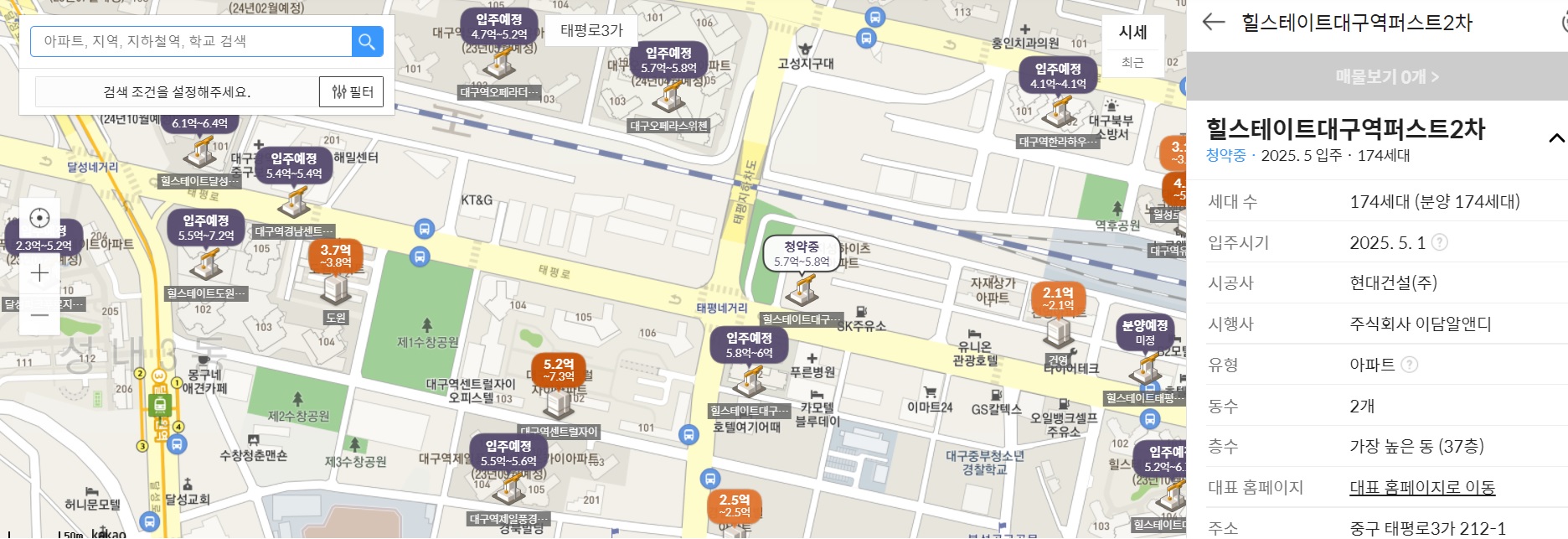 힐스테이트 대구역 퍼스트 2차 대구 대장아파트로~