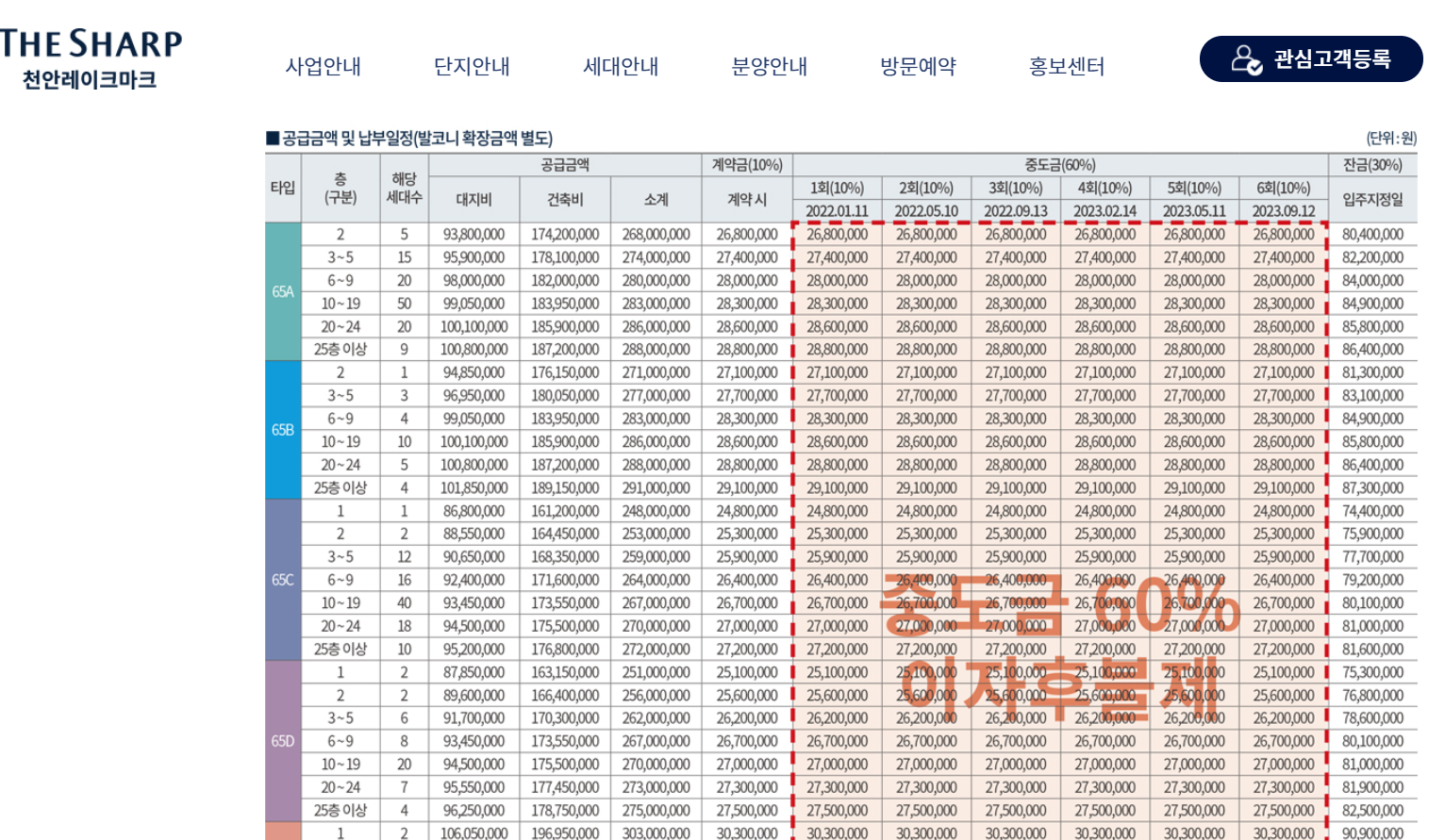 더샵 천안레이크마크 분양가는 입주자 공고문에 공시되어 있습니다. 2억6천에서 3억3천으로 전국적인 분양가를 비교해볼때 상당히 합리적인 가격이라고 할 수 있습니다. 중도금 60%는 이자 후불제로 중도금 대출이 진행됩니다. 더샵 천안레이크마크 계약금은 10% 2천6백에서 3천3백이 필요합니다. 더샵 천안레이크마크 특별공급으로 총 202세대가 제공되며 일반 분양 세대수는 209세대입니다. 더샵 천안레이크마크 특별공급은 기관추천, 다자녀가구, 신혼부부, 노부모부양, 생애최초로 청약 가능합니다. 천안시 직산읍 삼은리 더샵 천안레이크마크 청약에 성공하셨다면 이제 더샵 천안레이크마크 초피가 천안의 포스코 브랜드 더샵으로 인해 합당한 프리미엄이 붙게 되면서 천안 대장 아파트로써 매매가도 형성 될것으로 보여집니다. 일단 분양가가 올해 타 지역 비교시 합리적이기 때문에 프리미엄도 기대하셔도 될것같습니다. 비규제 지역에서 분양 청약 도전은 필요한 투자인 듯합니다. 전매제한을 받지않고 더샵 천안레이크마크 프리미엄 형성을 기대해보셔도 좋습니다. 자세한 사항은 공식 홈페이지에서 확인 해보시길 바랍니다. 입주자 공모문에 더샵 천안레이크마크 대한 세부 사항이 공지 되어 있습니다. 더샵 천안레이크마크 경쟁률 청약률을 통해 프리미엄 형성에 관심 가져 보시길 바랍니다.