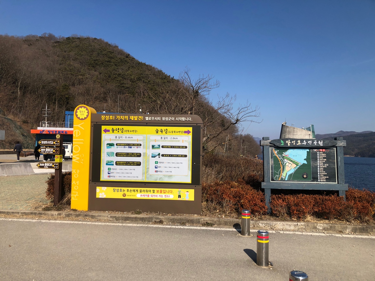 장성호 출렁다리는 노란색으로 브랜딩이 잘 되어 있습니다. 장성호로 가는 길에 노랑 노랑 표지판들이 기분을 좋게 합니다. 장성호는 광주 전남 사람이라면 고속도로를 이용시 한번씩 보셔서 반가운 곳입니다. 장성호, 장성댐이라고도 불리웁니다.