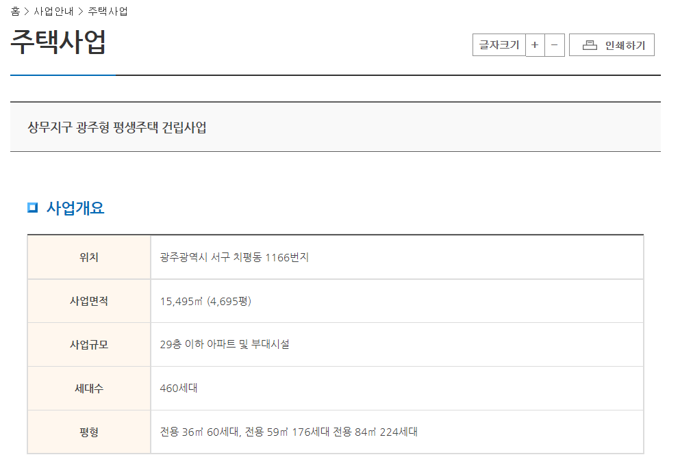 광주광역시에서 중산층 이하 무주택 가구의 주거 안정화를 위해 추진하고 있는 사업입니다. 상무지구 광주형 평생 주택 건립 사업은 사전 행정 절차를 모두 마무리하였습니다.