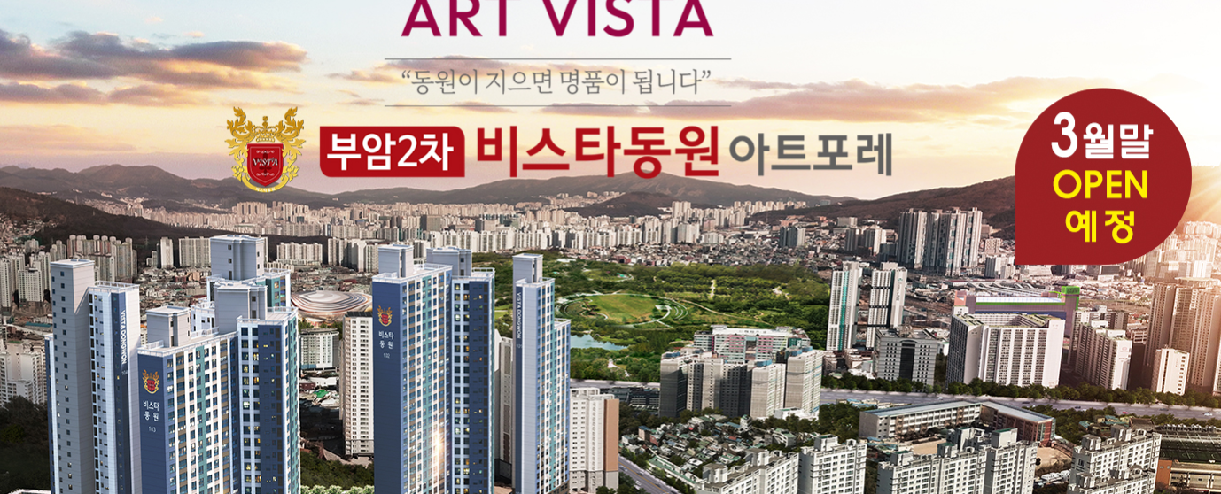 부산 부암2차 비스타 동원 아트포레가 3월 중 오픈예정입니다. 동원개발, 아시아드종합개발에서 부암에 2차로 비스타 동원 아트포레를 공급합니다.