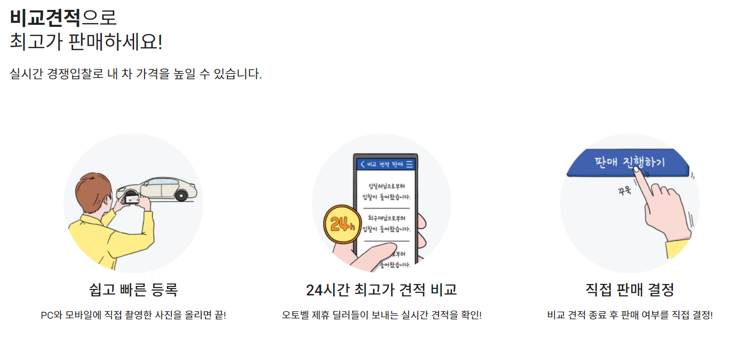 내 차 팔기는 전문 차량 평가사가 방문하여 차량 평가와 판매까지 도와 줍니다. 비교 견적도 가능합니다.