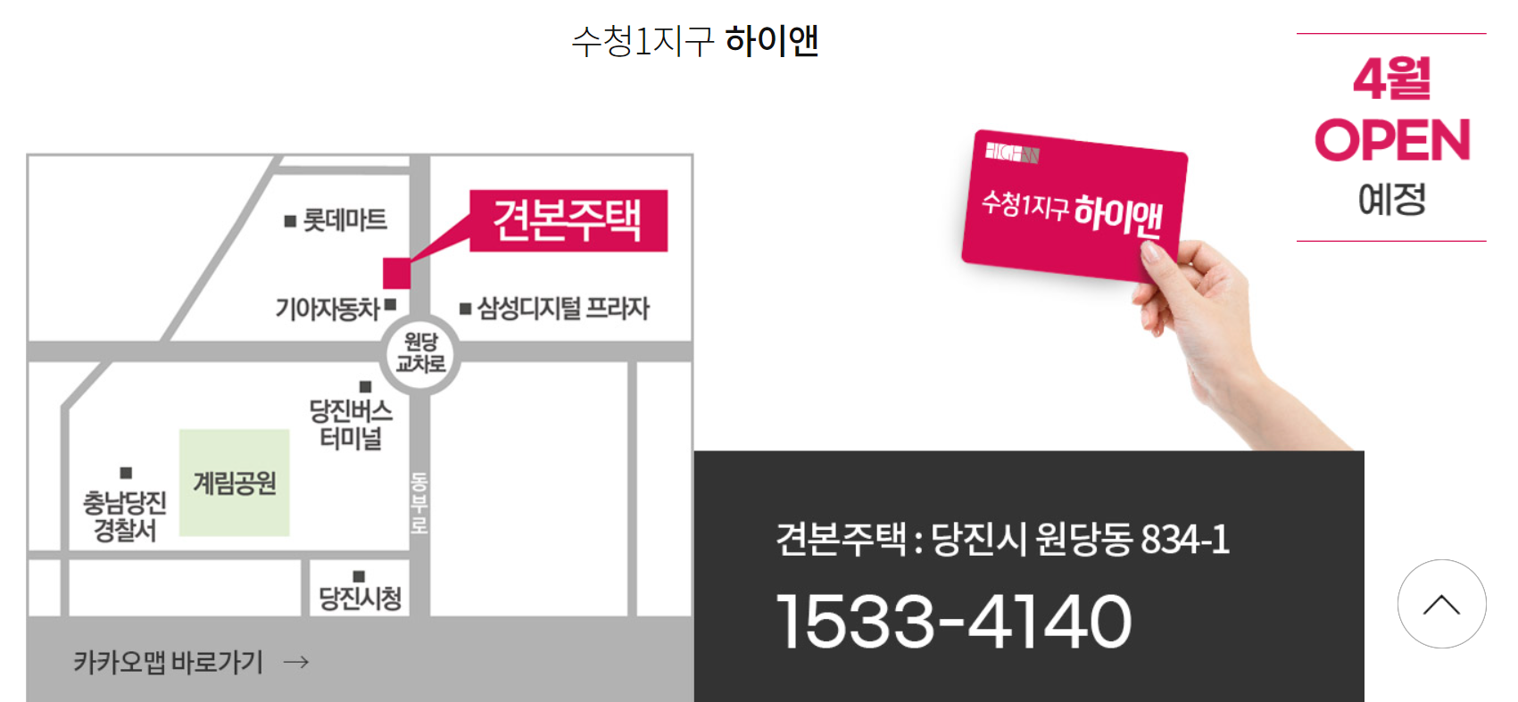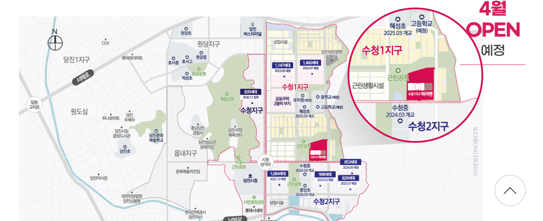 수청1지구 하이앤은 2023년 4월 오픈예정입니다. 자세한 일정과 분양가는 공식홈페이지에서 현재 관심 고객 등록하시면 우선적으로 정보 제공을 한다고 합니다. 당진시 수청1지구 신도시 택지 지구 구성으로 신도시에 많은 프리미엄을 누릴 수 있는 위치 입니다. 신혼부부들이 많은 관심을 보이고 있습니다.
