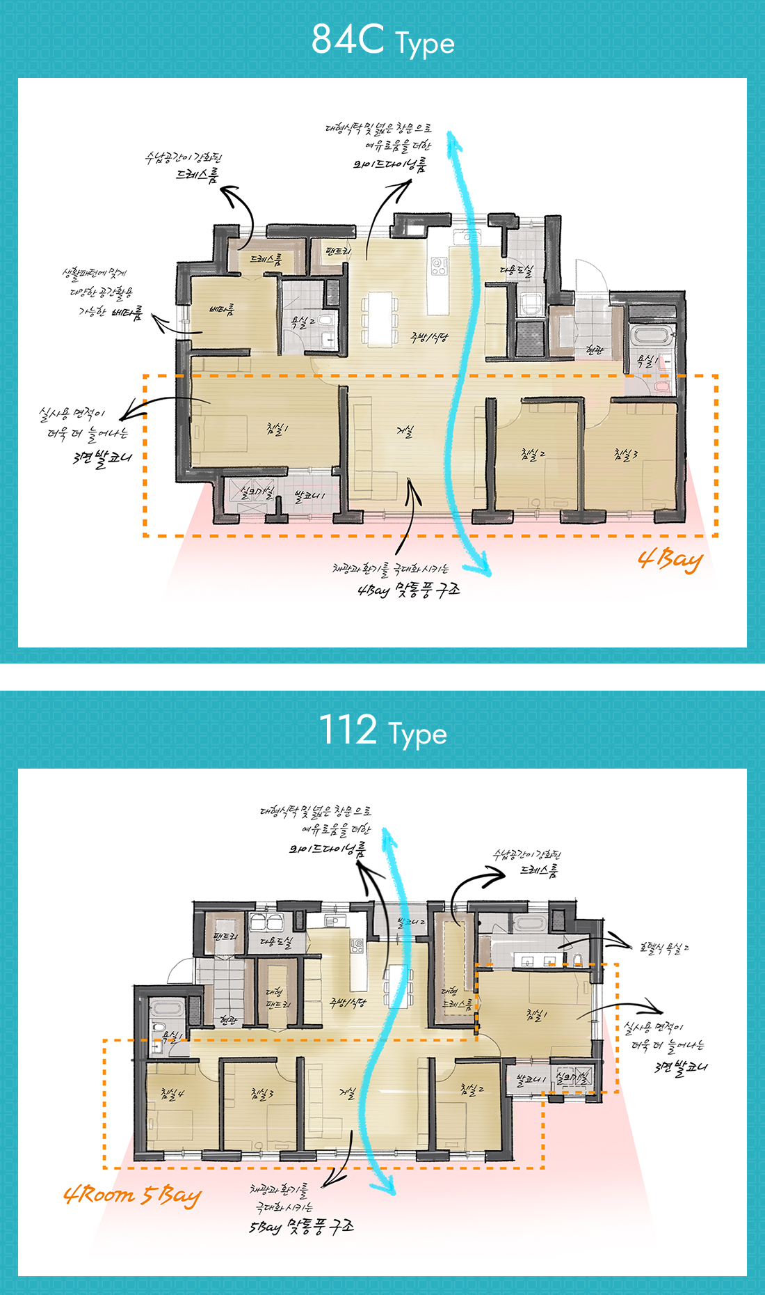 제천 자이 더 스카이는 선호도가 높은 84타입과 112타입으로 구성되어 있습니다. 4BAY 맞통풍 구조로 최신 설계가 적용되어 있습니다.