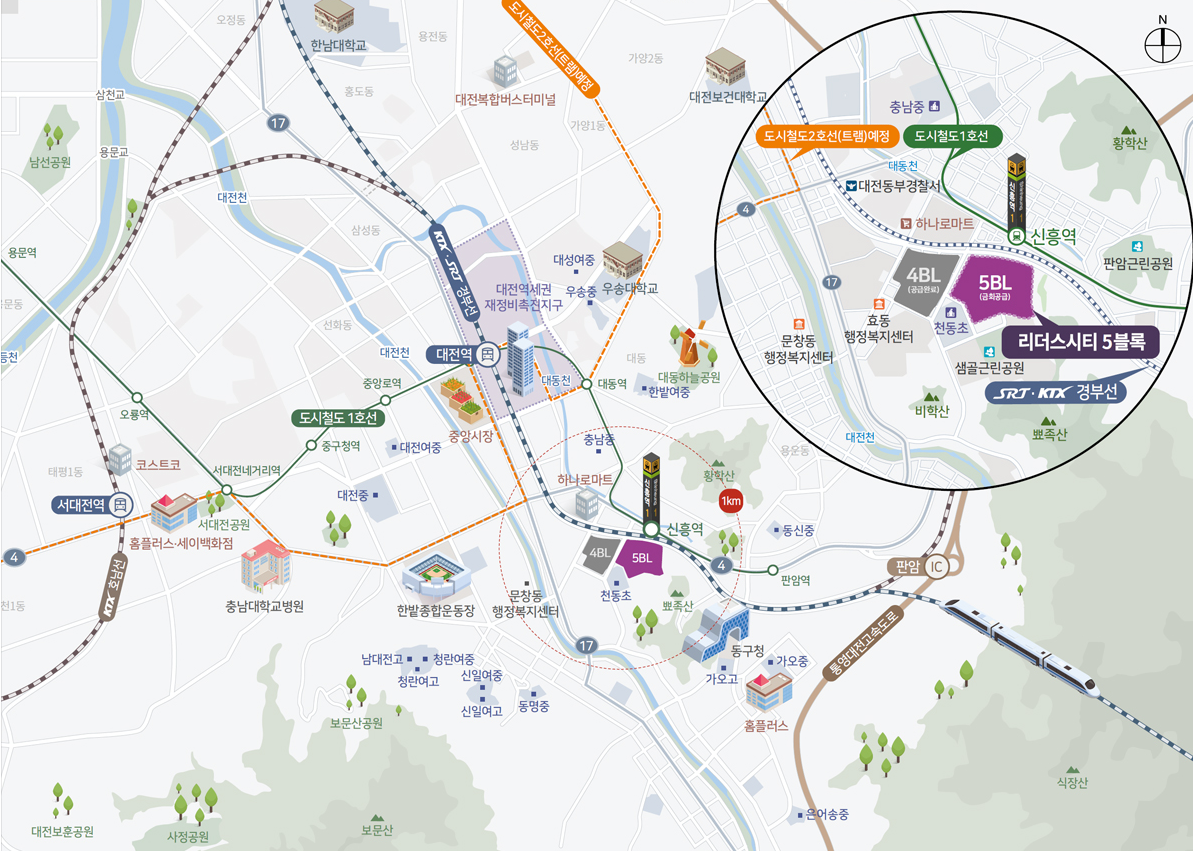 대전 도시철도 1호선 신흥역과 KTX대전역과 인접하여 훌륭한 교통 입지에 위치합니다.