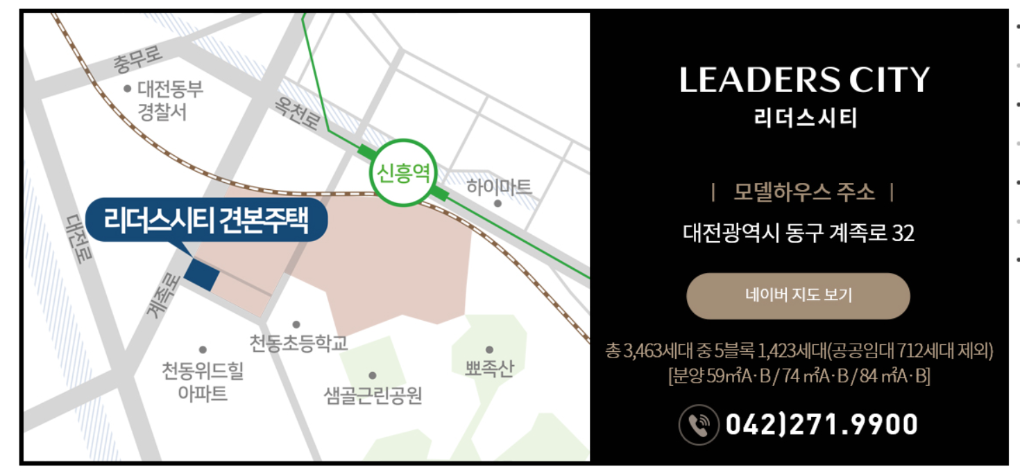 대전 천동3지구 리더스시티 공식홈페이지에서 사이버 모델하우스를 관람하실 수 있습니다.