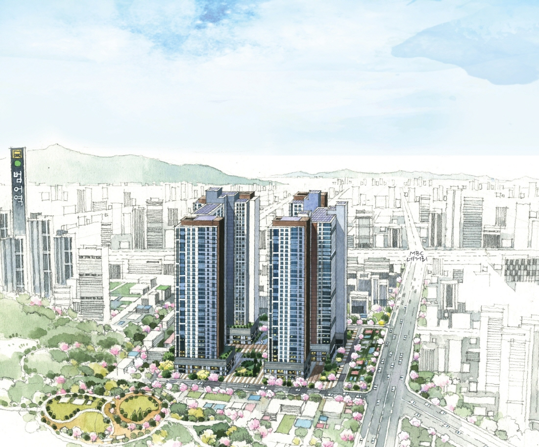 범어 자이는 kb부동산신탁에서 시행하며 시공은 gs건설에서 자이 브랜드로 아파트와 오피스텔을 공급합니다.